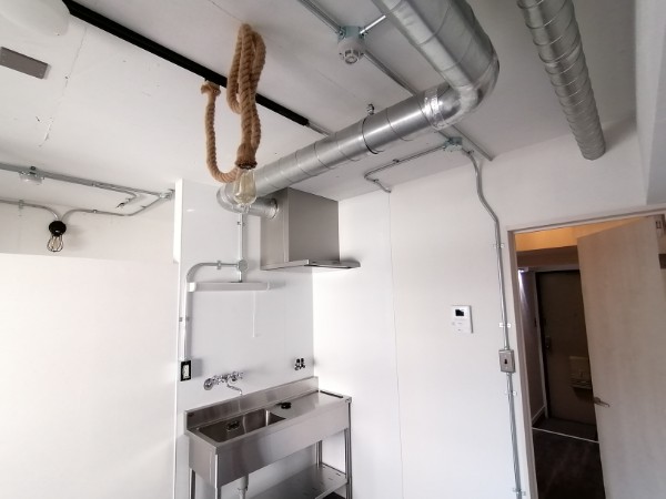 通常のキッチンではなくインダストリアル風な洒落たシンク