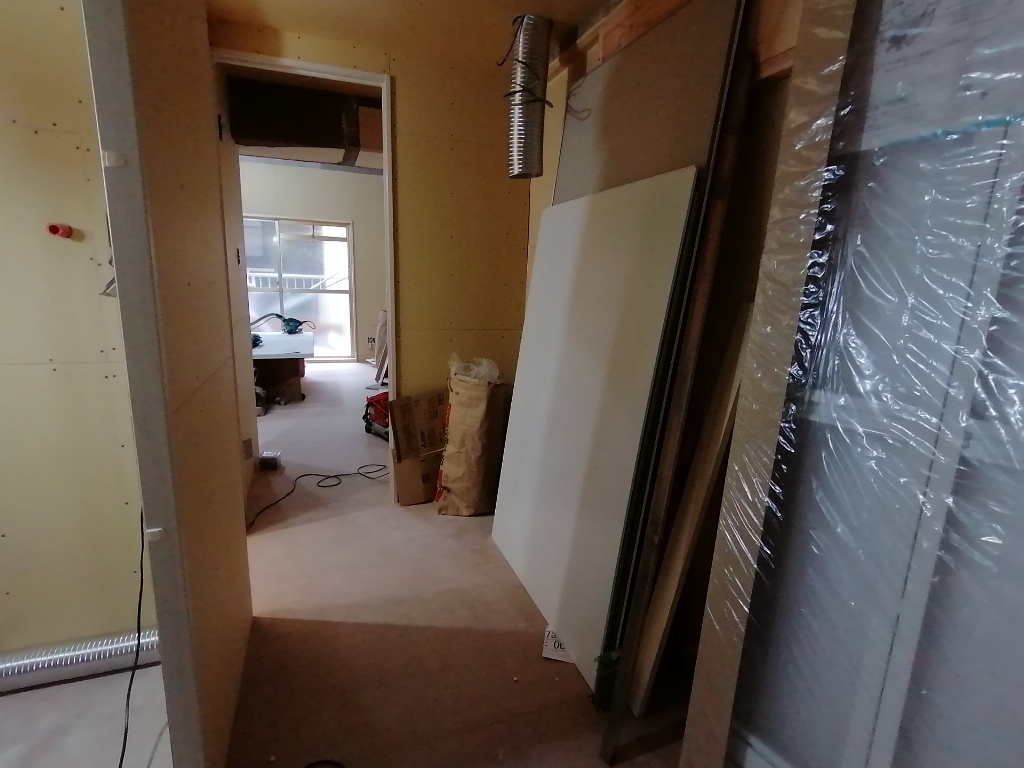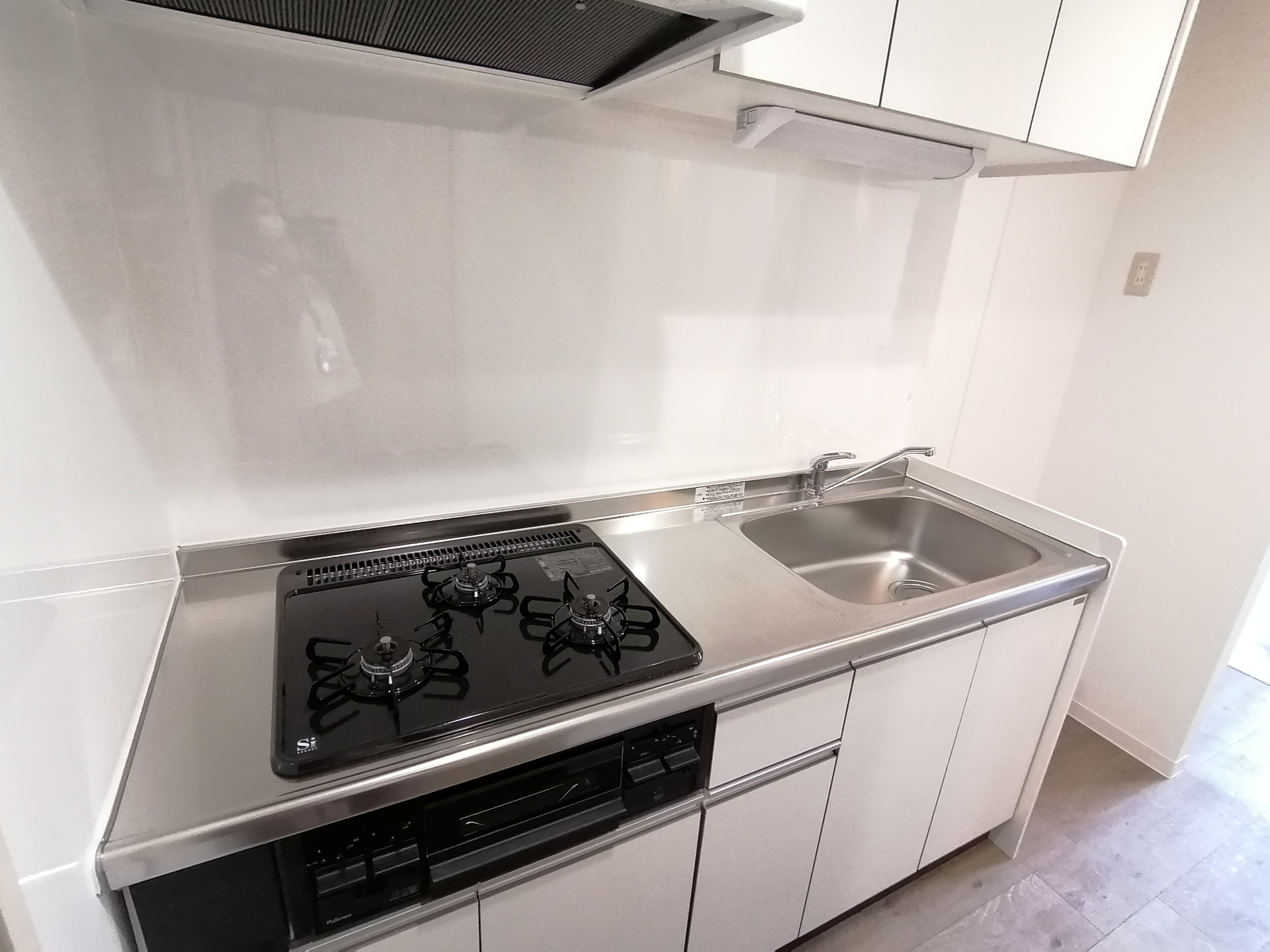 キッチンの位置を変更し、3口システムキッチンを取り付けました